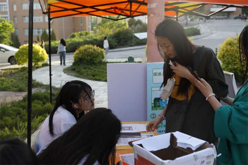 “人人参与环保,共创绿色未来”的条幅在校园里张贴,烈日下,旅环学生会团总支工作人员积极科普着环保知识,向同学们宣传相关政策。兄弟社团天使合唱团助力活动,献唱2022年北京东奥会志愿者之歌:“让爱心接力”。他们的辛勤付出和对环保的热情使同学们对生态文化有了更深刻的认识,促进了本次活动的宣传工作深入校园。